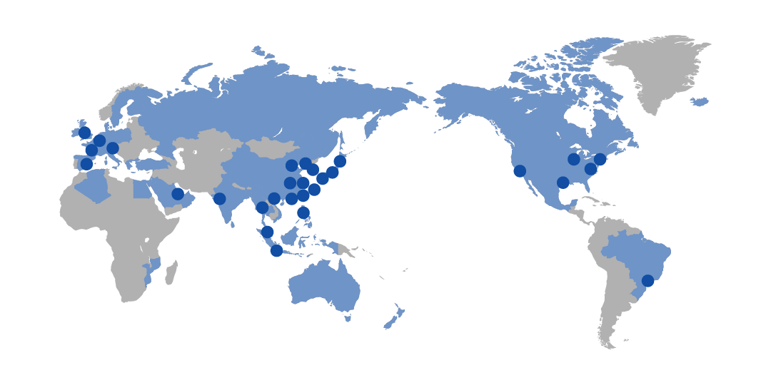 Fuji Electric is located in 191 locations and 20 countries. Through these networks, we deliver products to customers around the world; contributing to the resolution of energy management problems.