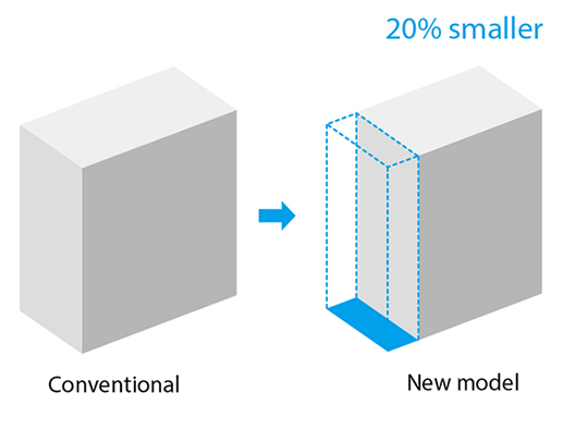 When compared with our switchgear of the same rated capacity (rated voltage: 24 kV, rated current: 1250 A)