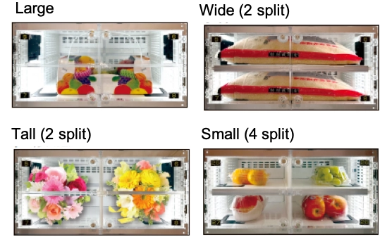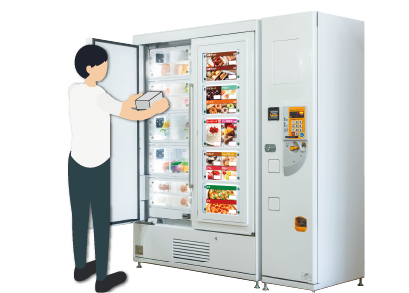 The display window installed inside the outer door reassures customers and inspires the purchase decision because customer can see the actual products.