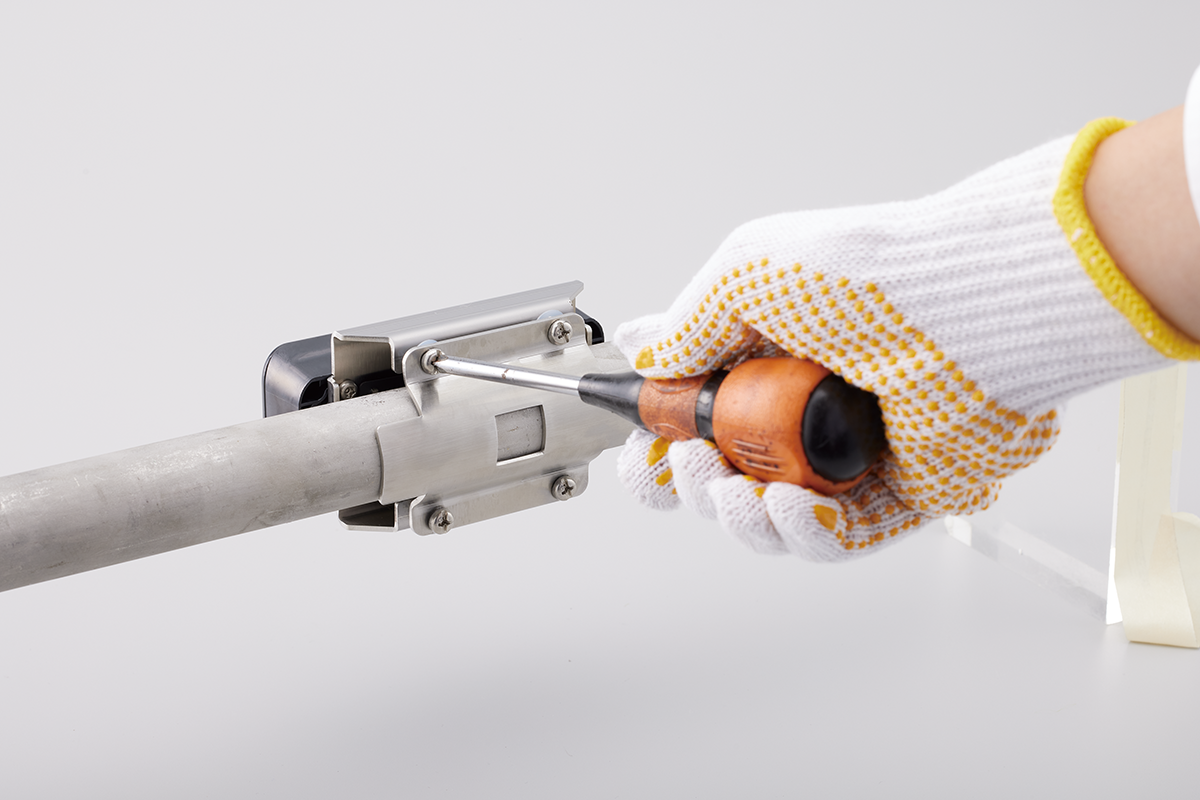 The palm-sized S-Flow ultrasonic flowmeter is easy to install. Without the need to cut the piping, anyone can attach it easily with a single screwdriver.