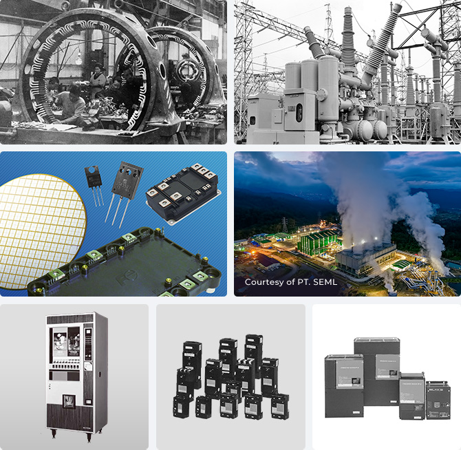 In August 1923, our predecessor Fuji Electric Manufacturing Co., Ltd. was established through the capital and technical partnership of Furukawa Electric of Japan and Siemens of Germany. Amid the ongoing modernization of industry in Japan, we contributed greatly by offering products such as motors, transformers, generators, circuit breakers, and measuring instruments. This facilitated mechanization in the mining, steel, and chemical sectors and helped stabilize electric power supply.