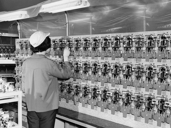 We produced general-purpose electric motors, watt-hour meters, and other equipment for postwar reconstruction. To meet the increasing demand for power due to economic growth, we have taken on the challenge of increasing the scale of hydro power plants and thermal power stations, as well as manufacturing facilities for Japan's first nuclear power station. We also released transformers and circuit breakers for substation and distribution facilities that had been enlarged. We supplied measurement and control equipment to steel works and water and sewage treatment facilities to automate operations. Our compact, lightweight, high-performance drive units were provided for the 1st-generation Shinkansen to support growth in transportation. We also offered home appliances, and their heating and cooling technology led to manufacturing of beverage vending machines.