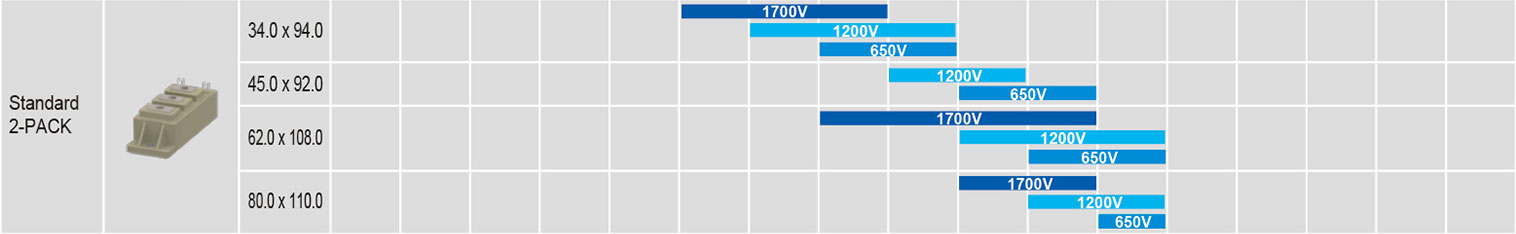 The same package lineup as the conventional Si-IGBT modules
