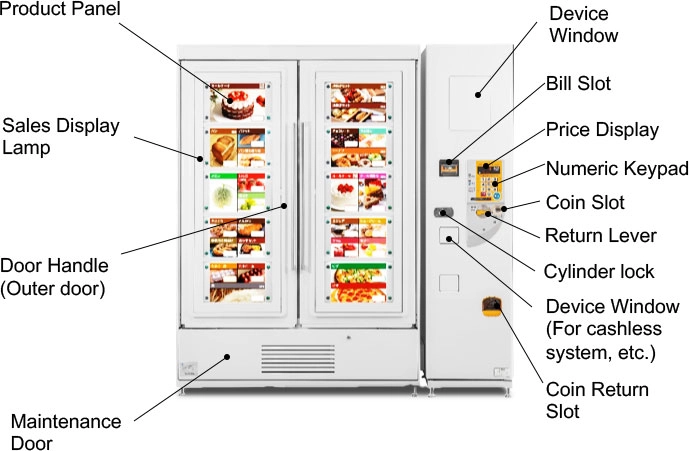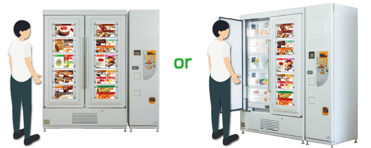 The display window installed inside the outer door reassures customers and inspires the purchase decision because customer can see the actual products.